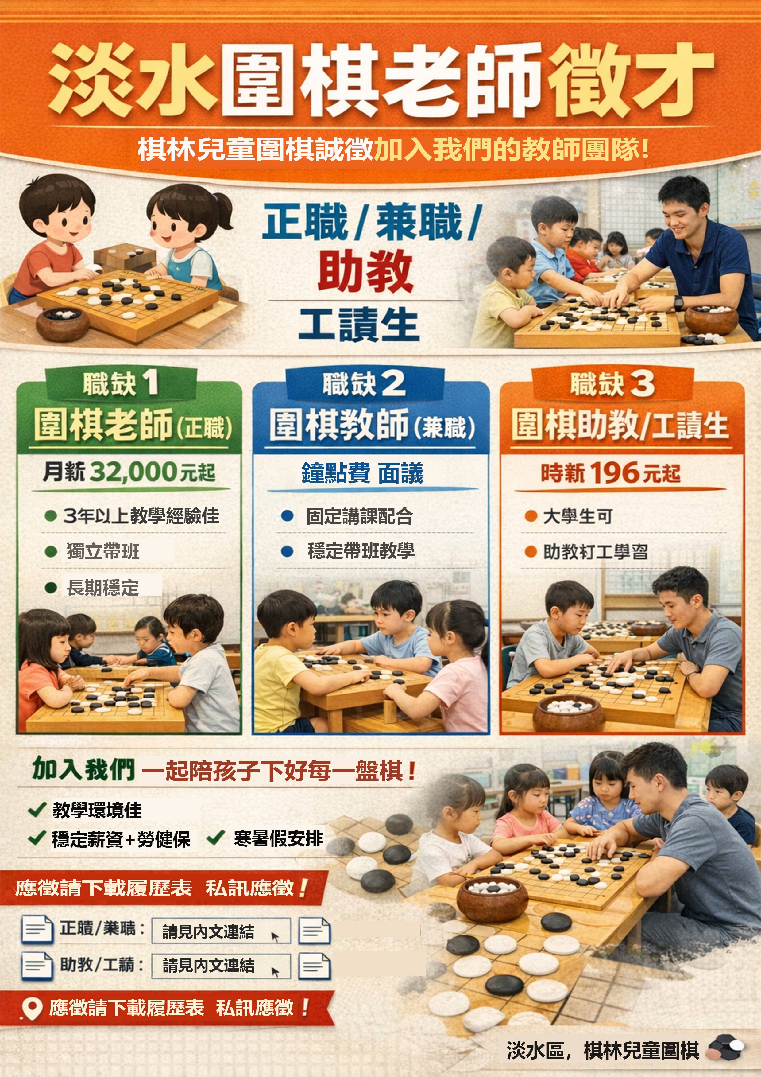 | 【淡水圍棋老師徵才】棋林兒童圍棋招募|正職圍棋老師/兼職圍棋教師/圍棋助教工讀生